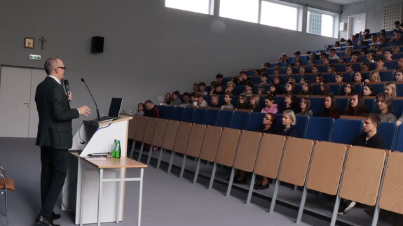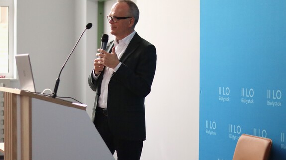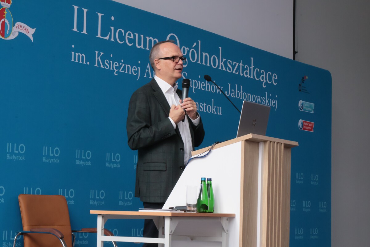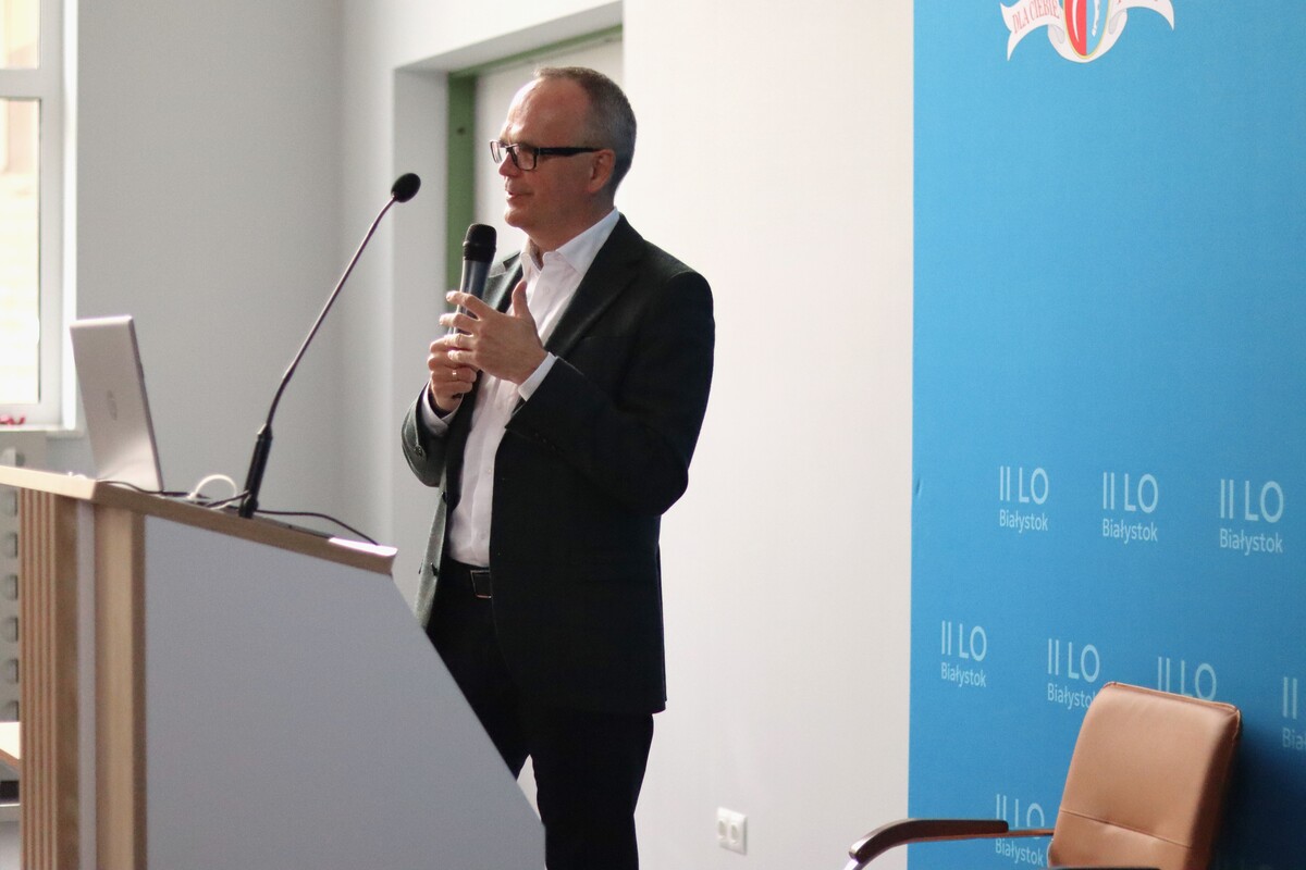 Megatrendy ekonomiczne. Kreacja czy dostosowanie? - relacja z wizyty Dziekana WEiF w II LO w Białymstoku